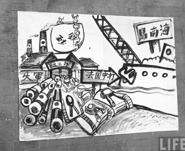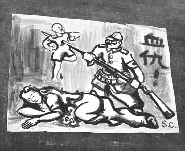 1948年6月,上海,上海交通大学的学生画作的反美海报。