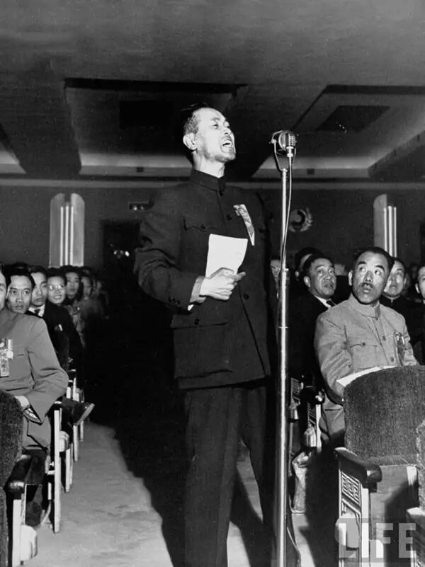 1948年4月,南京,恼羞成怒的代表在第一次国民议会上发言。