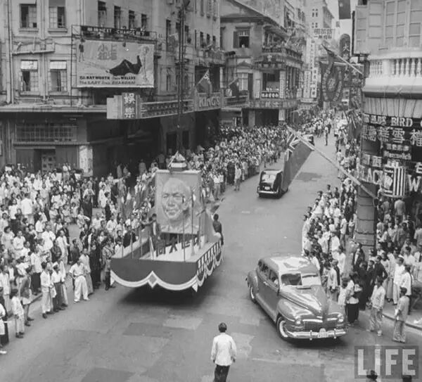 1948年,香港,游行庆祝“行宪国大”近期的选举结果。