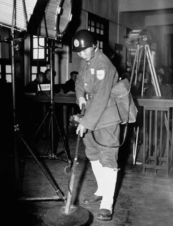 1948年4月,南京,宪兵在会场内进行安全检查,确保2700名国大代表安全。