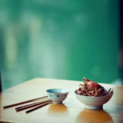 绍兴酱油烧成的小龙虾,清炒的小丝瓜
