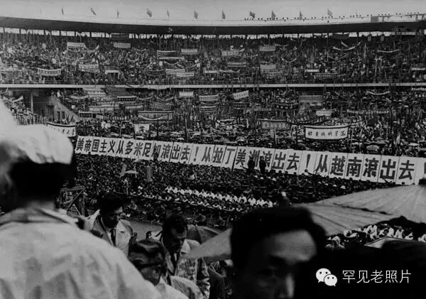 1965年5月,100万人在北京体育场集会,声讨美国的侵略行径。