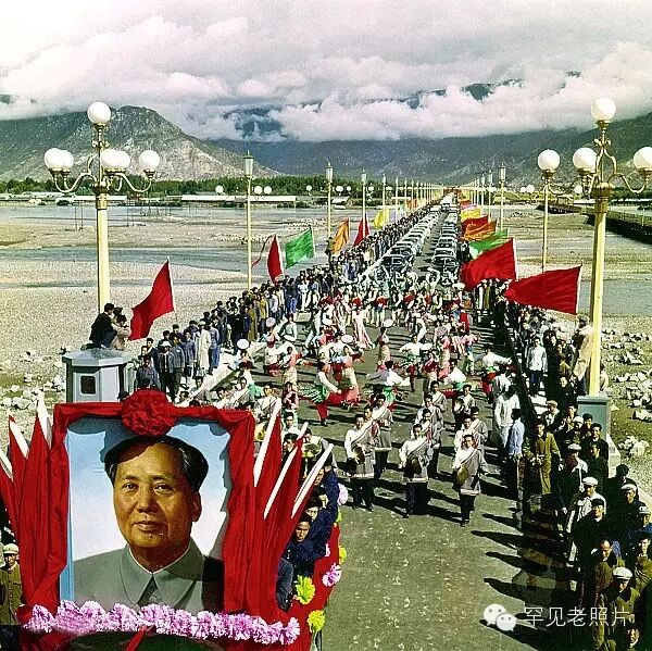 1965年,民主改革后,拉萨的建设有了较大的发展,图为拉萨大桥通车典礼。茹遂初/摄。