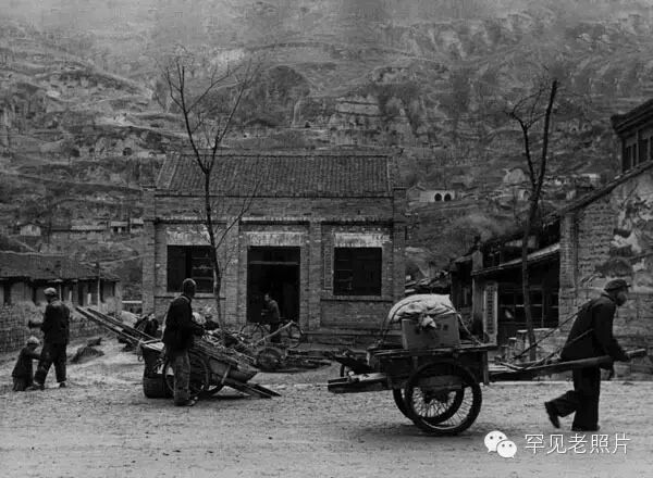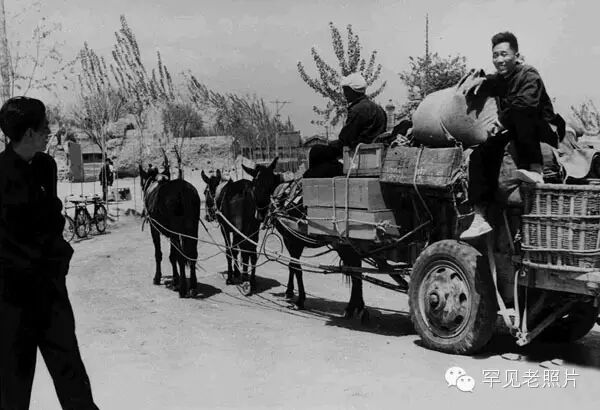 1965年,山西,山村胶轮畜力车,这是当时我国农村重要的交通工具。