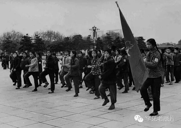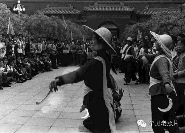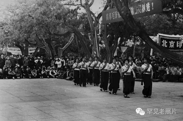 1965年,唱歌和舞蹈主要用来宣传党的政策。这些女孩在北京公园表演,描述越南游击队抗击美国人。