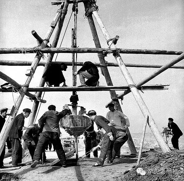 1965年,兰考人民在焦裕禄精神的鼓舞下,自力更生,土法上马打井抗旱。茹遂初/摄。