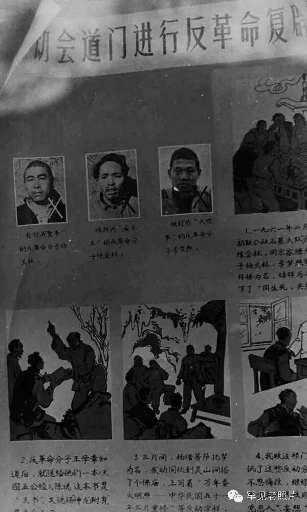 1965年,街头海报,提醒人们警惕和惩罚“反动会道门进行反革命复辟”。