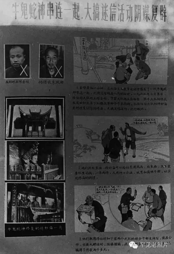 1965年,街头海报,提醒人们警惕和惩罚“牛鬼蛇神串连一起,大搞迷信活动阴谋复辟”。