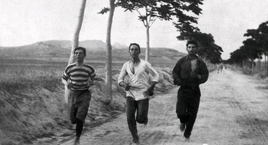 1896年4月,希腊雅典奥林匹克运动会,进行马拉松比赛的三名运动员。