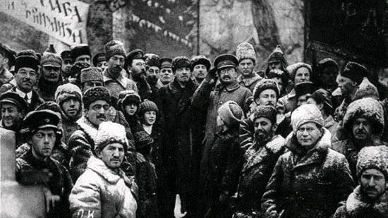 1919年,列宁在莫斯科红场上庆祝10月革命两周年。