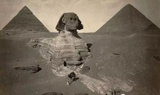 上世纪二三十年代,狮身人面像的部分身体还埋在黄沙里。