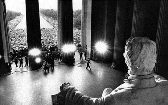1963年8月28日,华盛顿民权游行。林肯像凝视着外面的示威者。