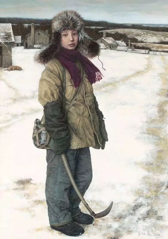 《青春纪事之二——踏雪割豆》木板·坦培拉绘画 122cm×87.3cm 2005年