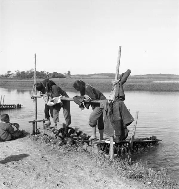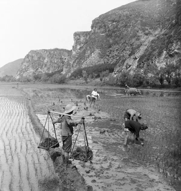 1940年代,南京,插秧,地点大概是在幕府山到燕子矶之间的江边。海达·莫理循/摄。