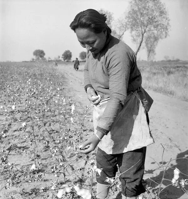1940年代,南京,摘棉花。海达·莫里循/摄。