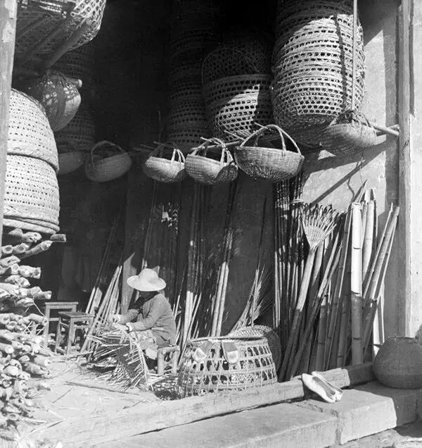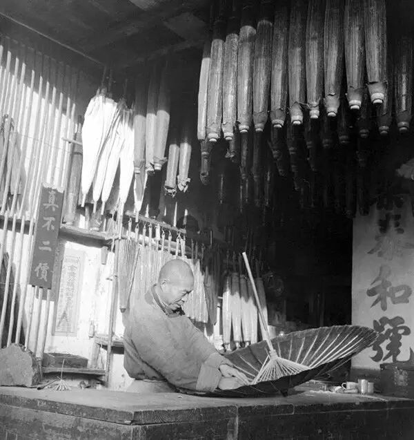 1940年代,南京,做花折伞的店铺。海达·莫里循/摄。
