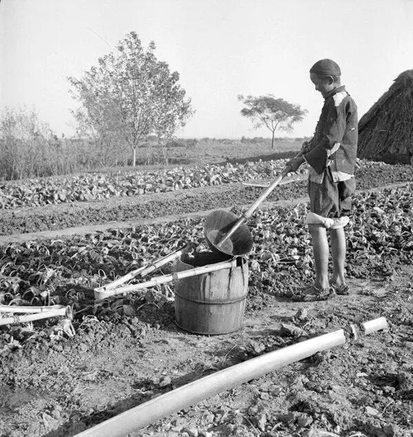 1940年代,南京,给蔬菜浇大粪。海达·莫里循/摄。
