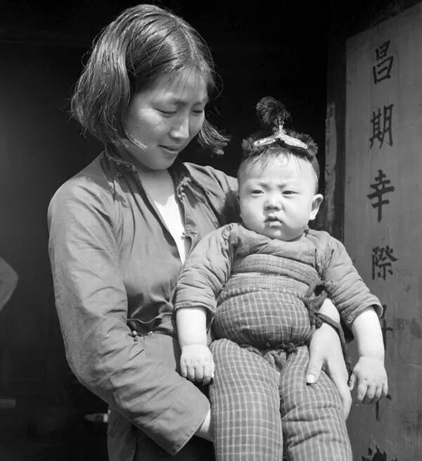 1940年代,南京,一对母子。海达·莫里循/摄。