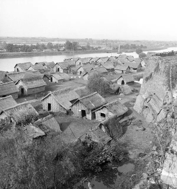 1940年代,南京,城墙边穷苦百姓的草房。海达·莫里循/摄。