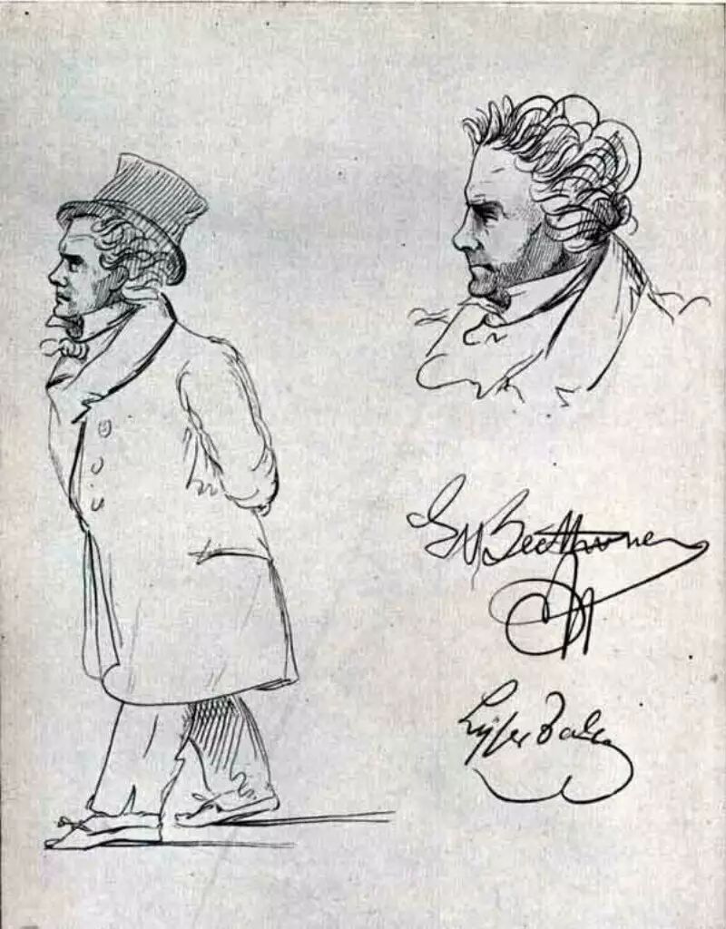 贝多芬那标志性的听力似乎已经恢复了正常,整个交谈过程进行得十分顺畅。贝多芬热情、真诚,双目炯炯有神,而每当聊到他的作曲家同行们时,他的回答都非常小心谨慎。出于对大师的崇敬,对于大师那些不愉快的往事,如他那不争气的侄子、海利根施塔特遗嘱等,我在交谈中也都有意进行了回避。