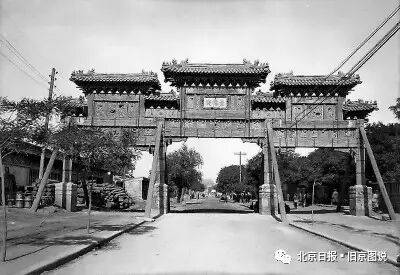1921年,历代帝王庙前的“景德街”西牌楼。1953年,景德街牌楼因妨碍交通被拆除。在梁思成的呼吁下,牌楼构件、榫卯结构被完整保留。首都博物馆新馆落成后,景德街牌楼被重新安装于首都博物馆大厅内,其正面进行了重新彩绘,背面则保留斑驳古旧的原貌。奥斯伍尔德·喜龙仁摄