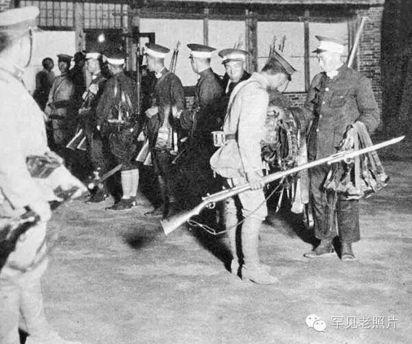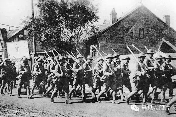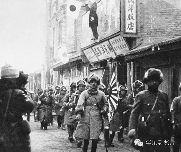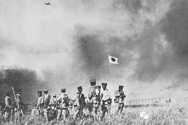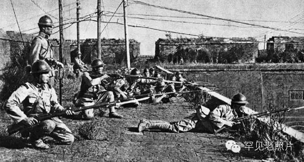 九一八事变,日军在沈阳城墙上向中国军民射击。