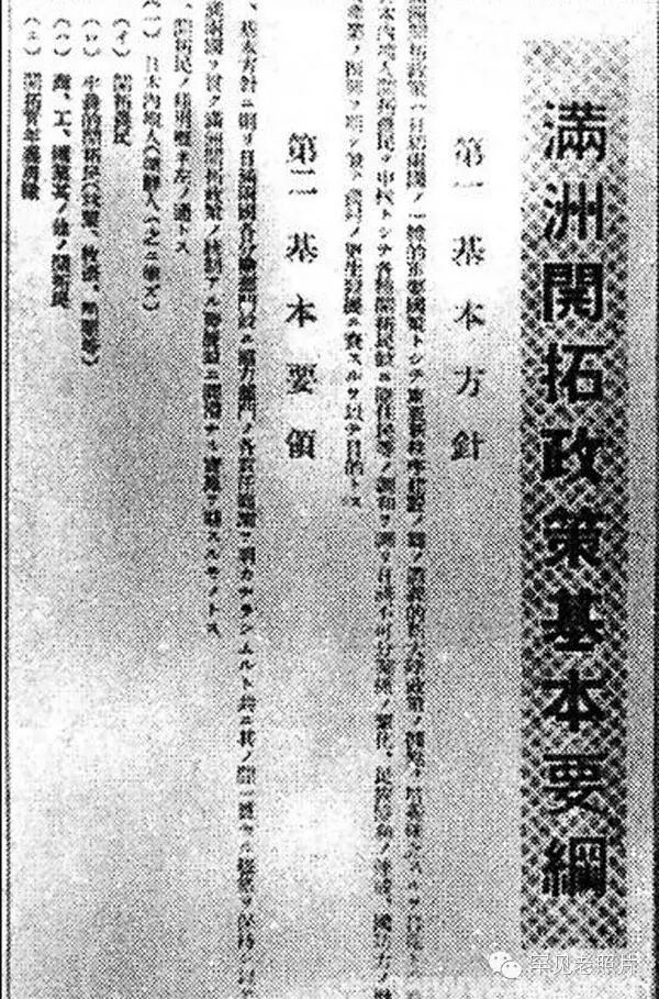 日本制定的关于移民满洲的《满洲开拓政策基本要纲》。