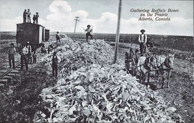 1980年代,加拿大艾伯塔省某处,大量的北美野牛骨头。这个物种险些因人类捕杀而灭绝。