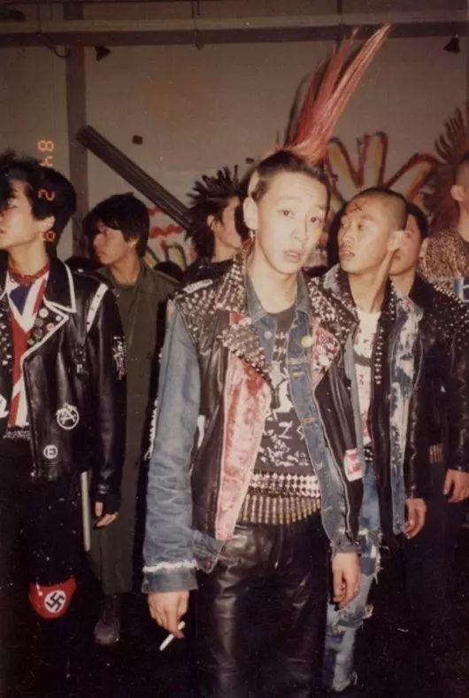 1985年,日本东京地下朋克摇滚音乐会上的年轻男子。