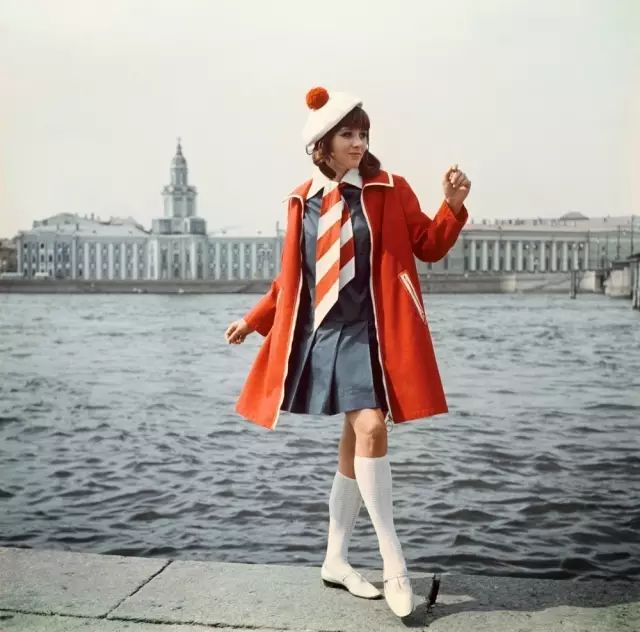1968年在苏联莫斯科,一名时装模特在拍照。
