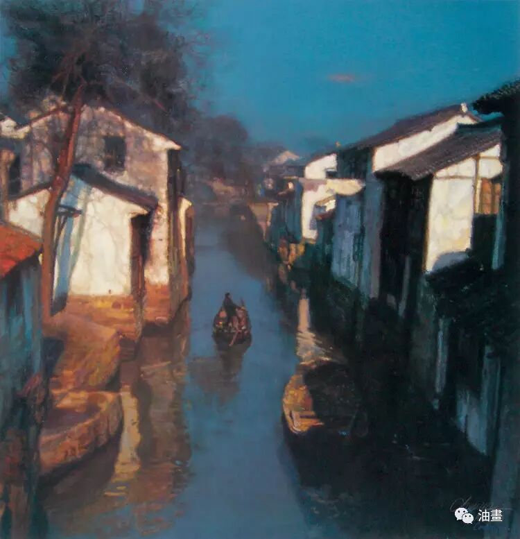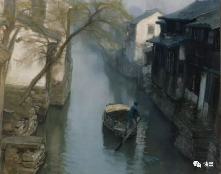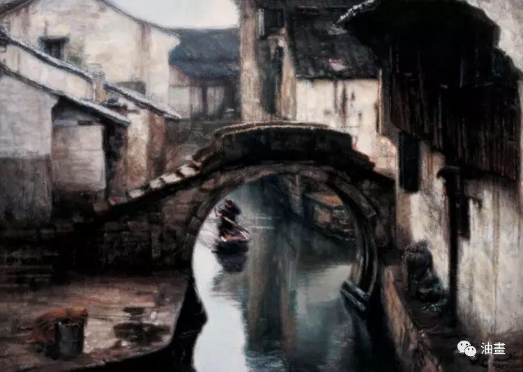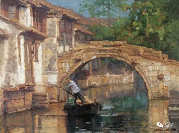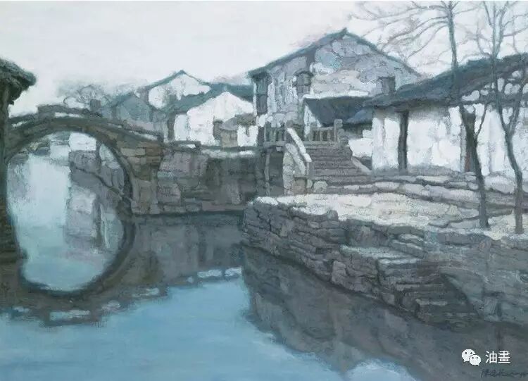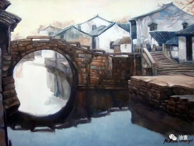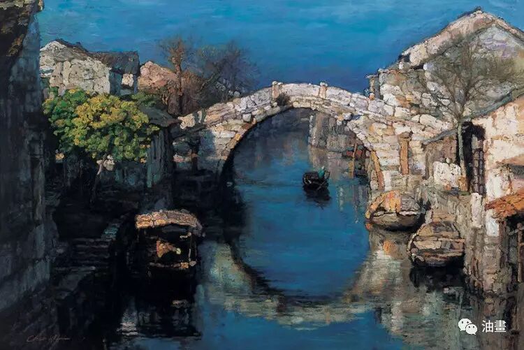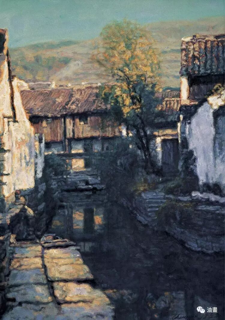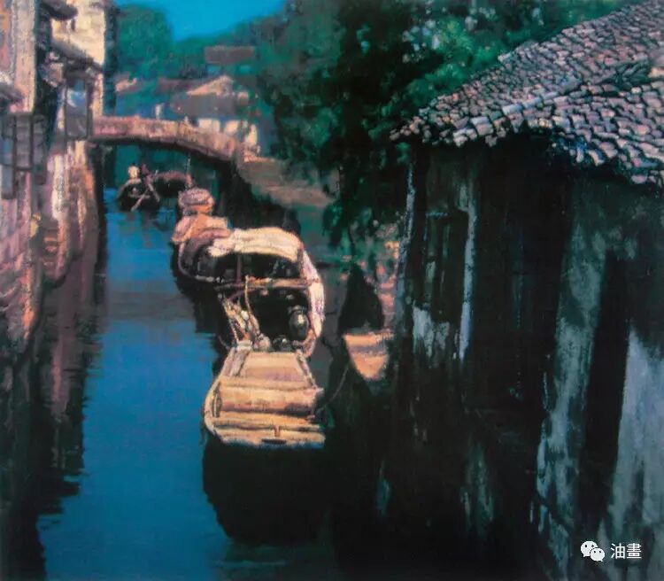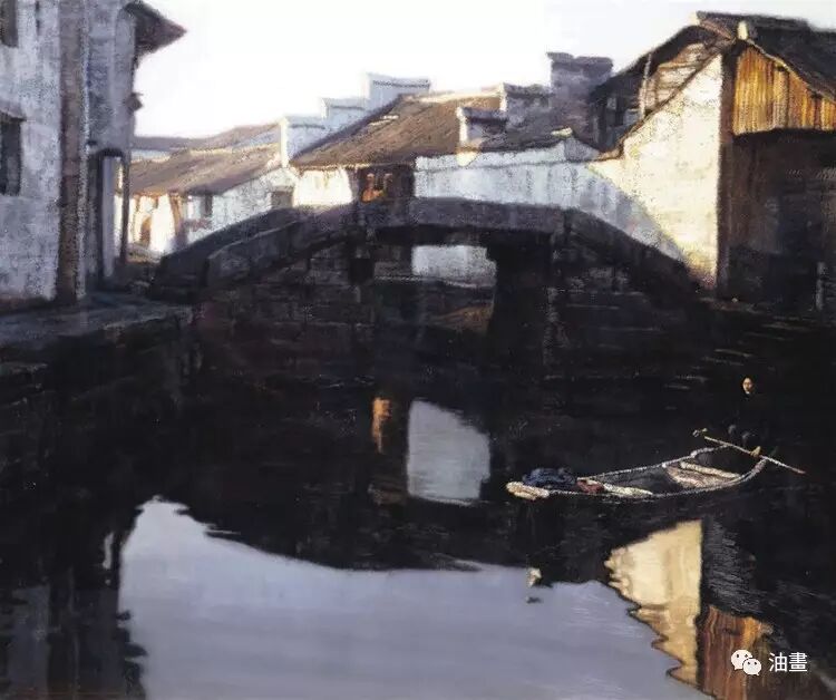 看陈逸飞的风景画, 我们首先感受到的是非同寻常的宁静, 它使人神往, 令人陶醉, 这是一种超凡脱俗的宁静, 在它的笼罩下, 浓郁的异国情调及东方神秘气氛油然而生。这是主观的、浪漫化了的江南水乡, 它是建立在西方对东方的想象、理解和需求基础之上的, 这正是典型的“东方主义”特征。它让西方人看到了古朴、神秘、宁静的东方世界, 一个与西方完全“不同”的却为他们所能理解所能想象所能读解的“东方”。