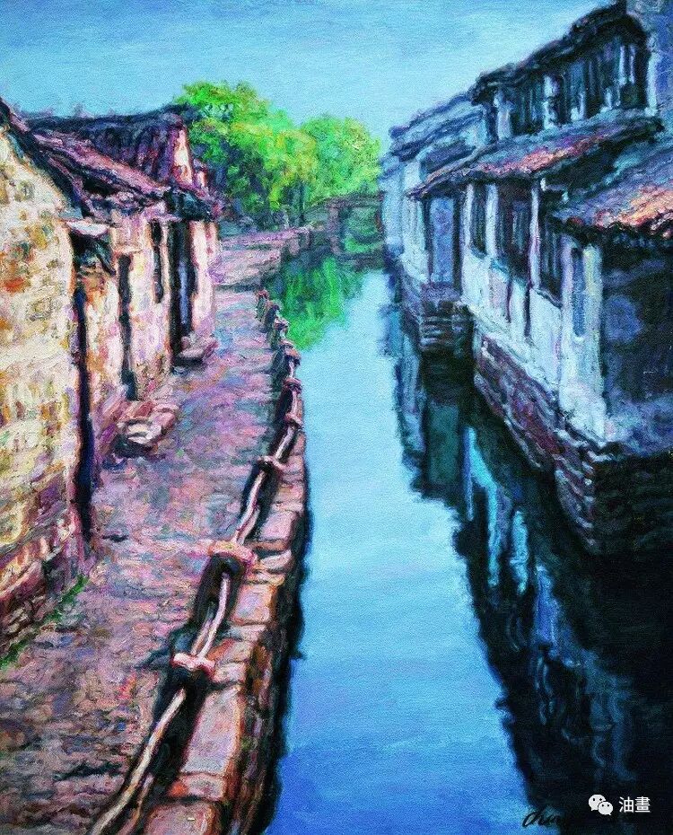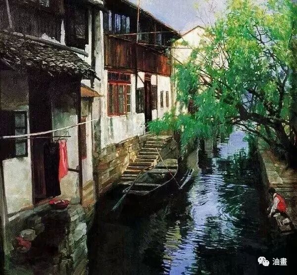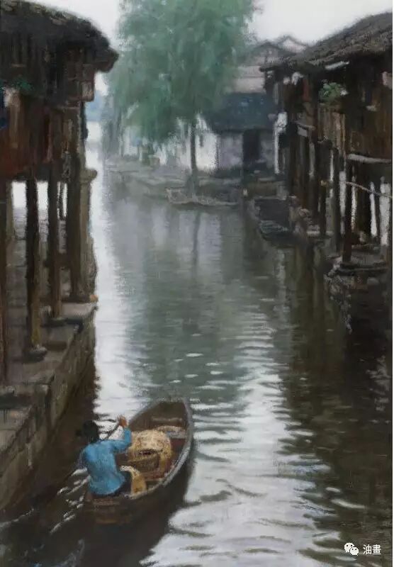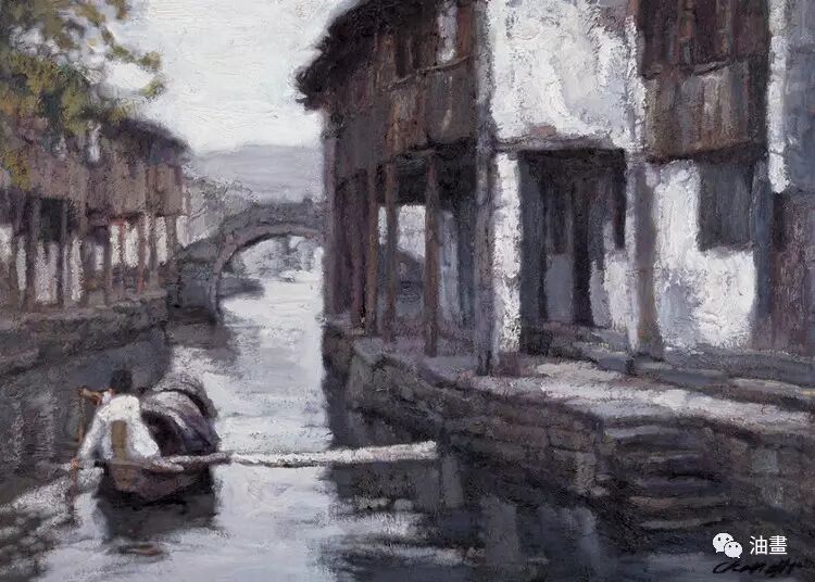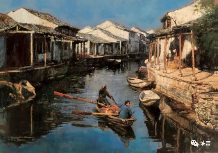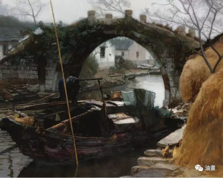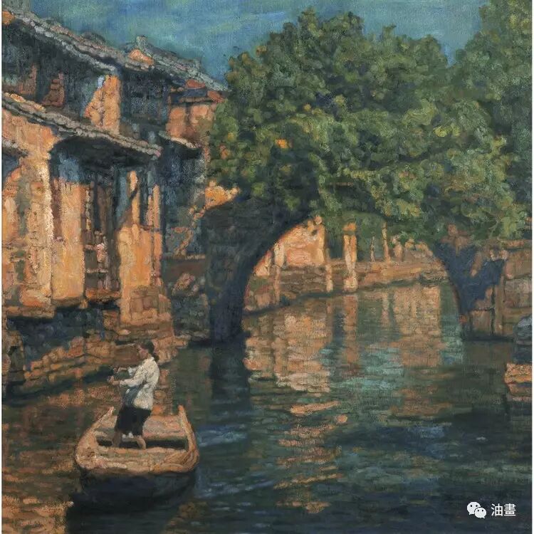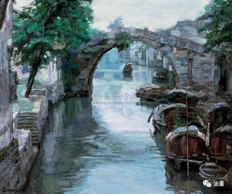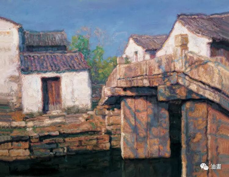 看陈逸飞的风景画, 我们首先感受到的是非同寻常的宁静, 它使人神往, 令人陶醉, 这是一种超凡脱俗的宁静, 在它的笼罩下, 浓郁的异国情调及东方神秘气氛油然而生。这是主观的、浪漫化了的江南水乡, 它是建立在西方对东方的想象、理解和需求基础之上的, 这正是典型的“东方主义”特征。它让西方人看到了古朴、神秘、宁静的东方世界, 一个与西方完全“不同”的却为他们所能理解所能想象所能读解的“东方”。