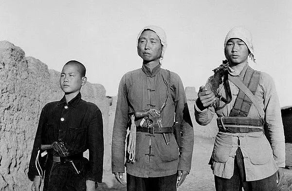 1937年7月18日,内蒙古五原县河北乡仰村,段绳武将军对持械儿童团及抗日青年团训话,激发抗日斗志。孙明经/摄。