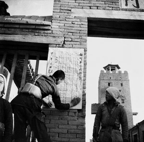1944年,河北任丘,八路军攻克任丘后张贴安民告示。石少华/摄。