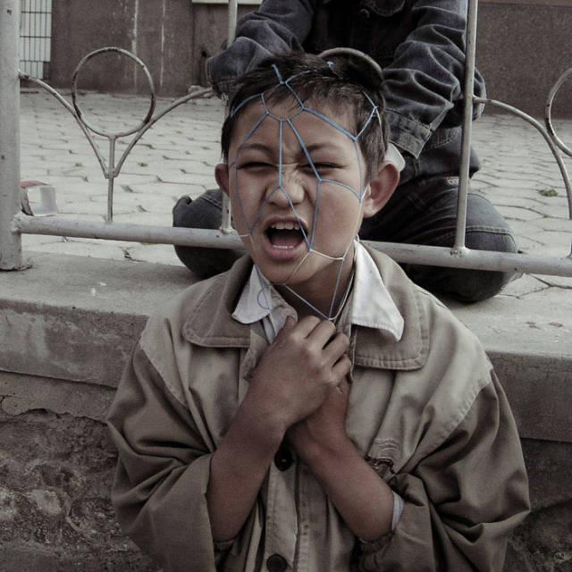 老旧的大院子里,男孩们在玩着奇怪的游戏。