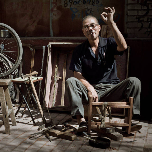 在路边修车档蹭个凳子歇歇脚,顺便给修车大叔敬根烟。