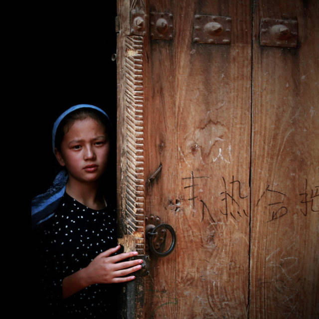 新疆喀什,高台古城,维族姑娘看了我一眼,然后就躲起来了。