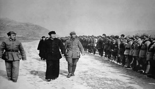 1944年11月,毛泽东、朱德等检阅八路军三五九旅主力部队。