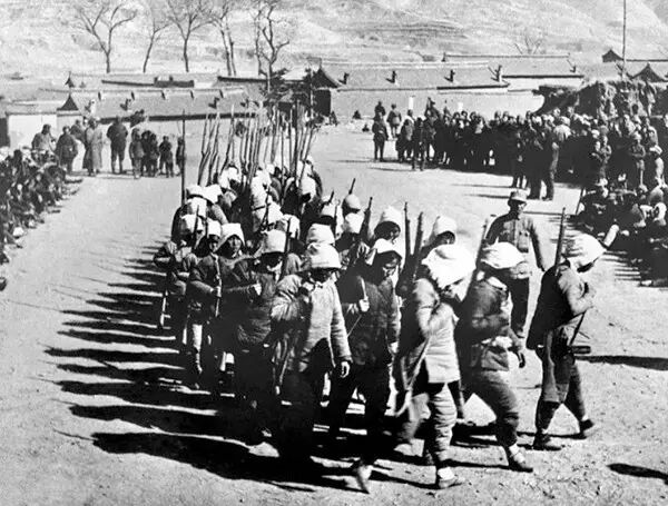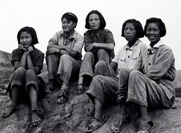 1940年 太行山裹脚女民兵。徐肖冰/摄。