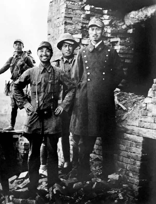 1940年,攻打榆社战斗胜利后,前线指挥员陈赓、周希汉身穿缴获的日军军服留影。徐肖冰/摄。