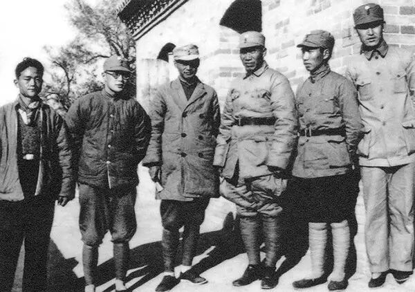 1937年5月,朱德(右三)、左权(右二)、徐肖冰(左一)等人在太原八路军办事处合影。