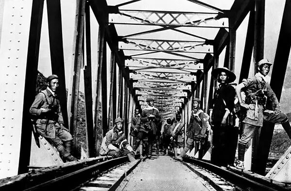 1940年,八路军攻克正太路卢家庄大铁桥。徐肖冰/摄。
