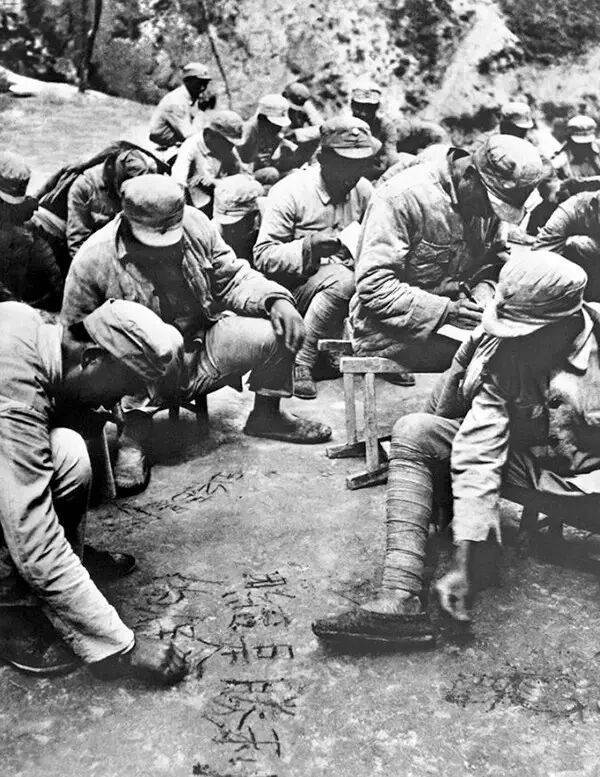 1942年,八路军359旅战士学文化。徐肖冰/摄。