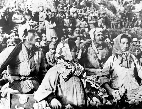 1943年,延安,鲁艺表演划旱船。徐肖冰/摄