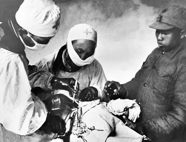 1940年,前线医疗队在为伤员做手术。徐肖冰/摄。