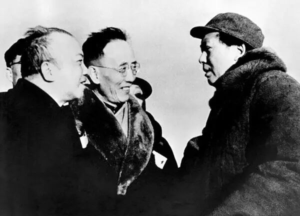 1949年,北京,毛泽东在西郊机场与各民主党派人士会面。徐肖冰/摄。
