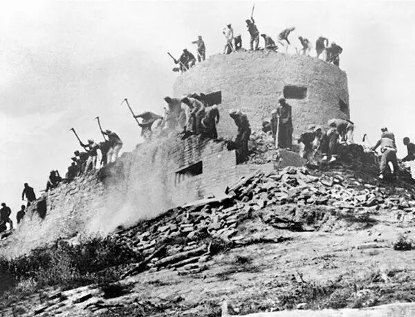 1940年,我军攻克敌人碉堡后将其拆毁。徐肖冰/摄。