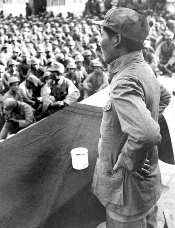 1938年,毛泽东在抗日军政大学作“论持久战”报告。徐肖冰/摄。
