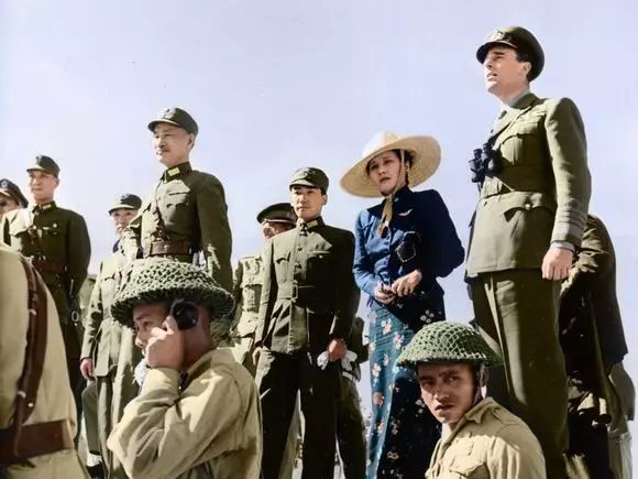 1943年,在路边迎接宋美龄的人群中,有一位身穿军装戴着白手套的华人,他在看到宋美龄的车队后敬了一个军礼。