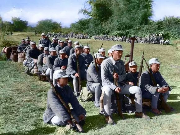 1943年12月,中国驻印军在兰姆伽的美军训练基地整齐地排好方阵,准备接受蒋介石的检阅。